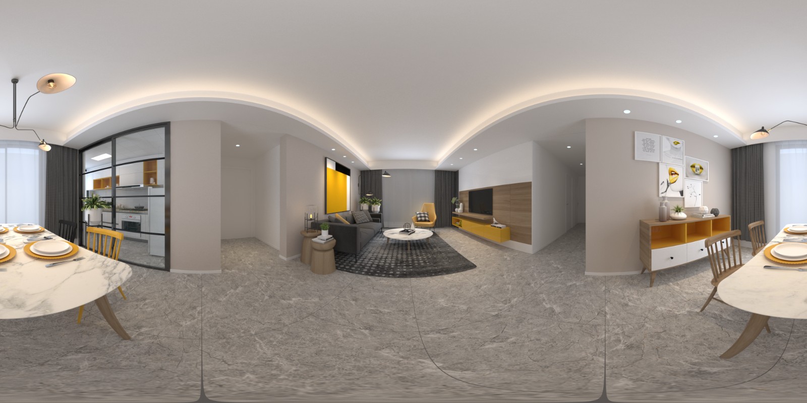 ·原理:使用单反相机(配鱼眼镜头)或全景相机拍摄多张照片,然后利用软件(如 PTGui、酷家乐等)将它们拼接成一张 360° 的平面全景图。